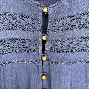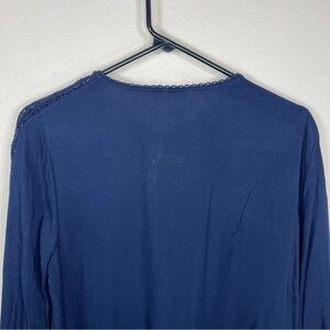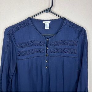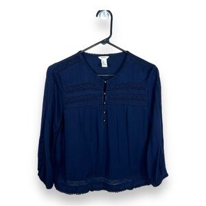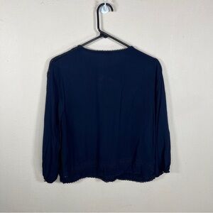 MEDIUM FOREVER 21 DARK BLUE PEASANT BOHO BLOUSE LIGHTWEIGHT BOHEMIAN