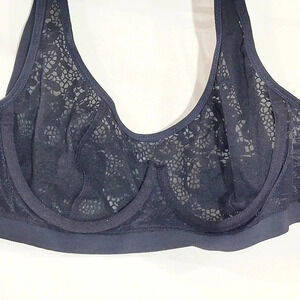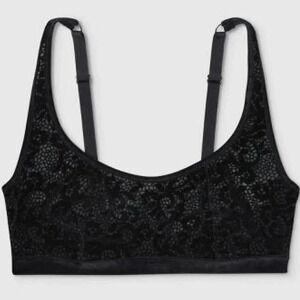 MEDIUM Gilligan Velour Velvet & Mesh Unlined Wired Bralette Black NWT