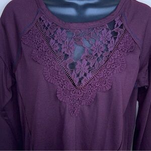 MEDIUM JOLT DARK PURPLE LONG SLEEVE TOP LACE EMBROIDERED NECKLINE