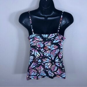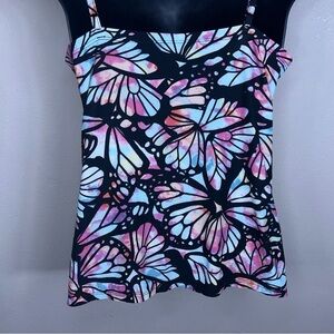MEDIUM JUNIORS BLACK COLORFUL BUTTERFLY TANK RETRO SLEEVELESS STRETCH TOP