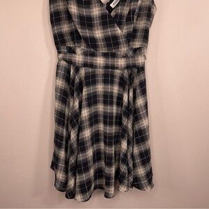 MEDIUM JUNIORS ESSUE PLAID DRESS SLEEVELESS ACADEMIA PREPPY LINED BEIGE BLACK