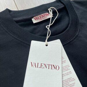 MEDIUM RELAXED FIT VALENTINO MEN`S BLACK COTTON T-SHIRT CREW NECK SHORT SLEEVE