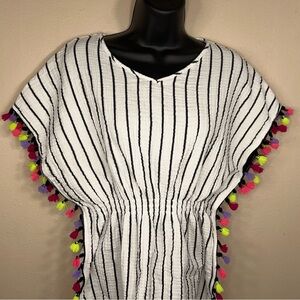 MEDIUM STRIPED BOHO COLORFUL TASSEL ACCENT BOHO BOHEMIAN TOP