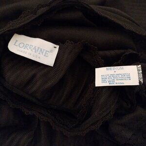 MEDIUM VINTAGE Lorraine LONG Slip Dress Black Lace Nylon Lingerie USA NIGHTGOWN