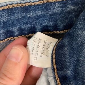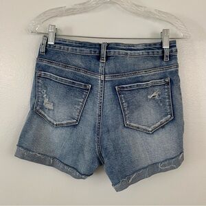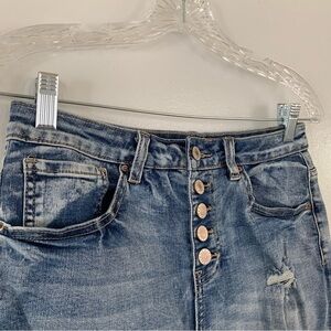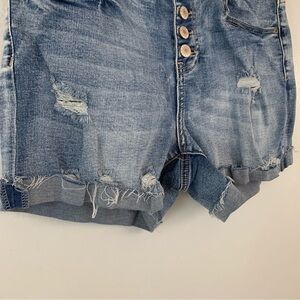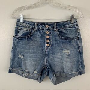 Medium Wash Distressed Raw Hem Button Fly Denim Shorts~Unbranded~Size S
