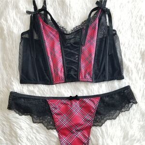 Victoria's Secret Unlined Lace Up Corset Top and Thong Set