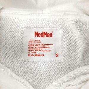 MEDMEN Weed Elongated French Terry Fleece Hoodie Pullover Sweatshirt White Small