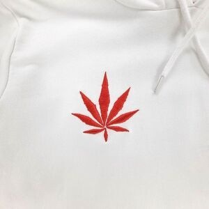 in white with red cannabis embroidery