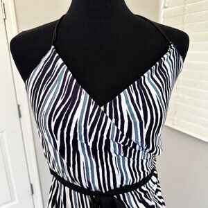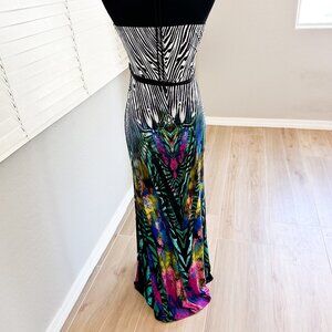 MEEK Halter Ombre Maxi Dress with Zebra Pattern on Top and Tropical Print on Bottom, Size Large