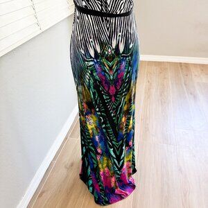 MEEK Halter Ombre Maxi Dress with Zebra Pattern and Tropical Print, Large