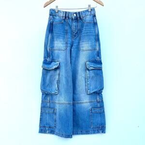 ME+EM Baggy Cargo Denim Trousers Jeans Pants Wide Leg Pockets 24 Vintage Wash