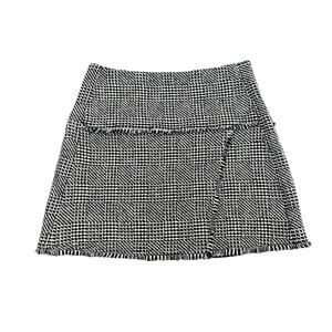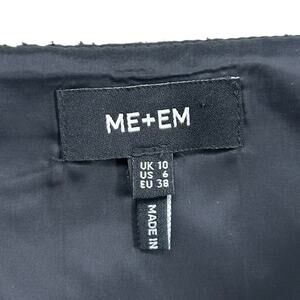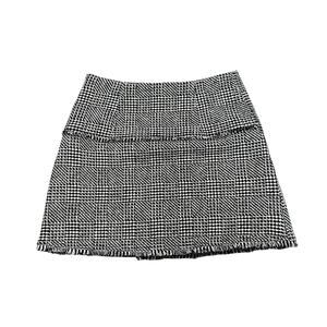 ME+EM Black White Textured Wrap Front Fringe A Line Zip Up Mini Skirt Womens 6