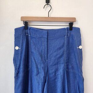 ME&EM Blue Wide Leg Trousers Pants Linen Blend Beachy Women's 16