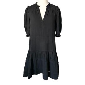 ME+EM Cheesecloth Pleat Detail Swing Mini Dress in Black. 100% Cotton. Good used condition with no flaws. Size 6.