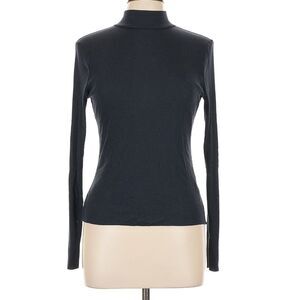 ME+EM Classic Navy Mock Neck Liquid Knit Ribbed Layering Long Sleeve Shirt Sz10