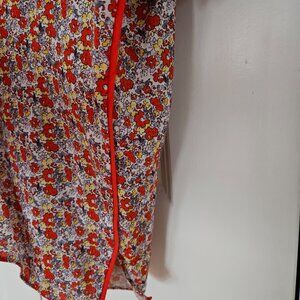 Pretty, light-weight flutter sleeve blouse in lovely floral pattern. Great pre-owned condition, no holes or stains. No pilling or tears. Made from lightweight material. Tie front detail. Size 10.