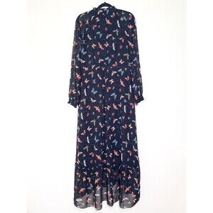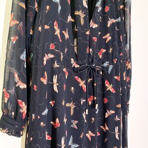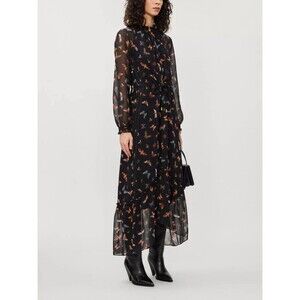 ME+EM insect print sheer sleeve maxi dress. High neck with partial zip closure, long sleeves, drawstring waist tie, lined. Retail $485