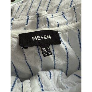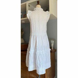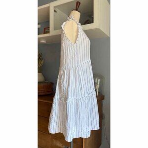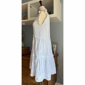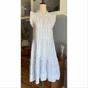 ME+EM Striped Swing Tiered Dress White w/ Blue Stripes Ruffles Cotton Blend
