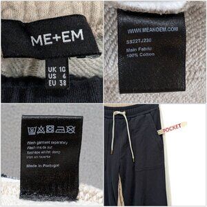 ME+EM Wide Leg Sweatpants Womens Black Beige White Colorblock Drawstring Size 6