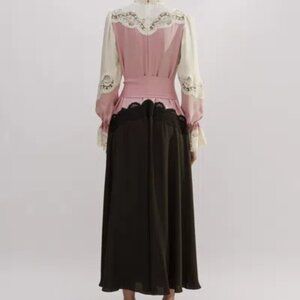 Silk Color Block Lace Maxi Dress + Belt In Light Cream/iris Pink/double Espresso.