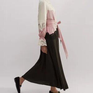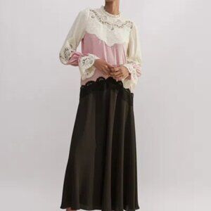 ME+EM Women's Brown Silk Colour Block Lace Maxi Dress + Belt