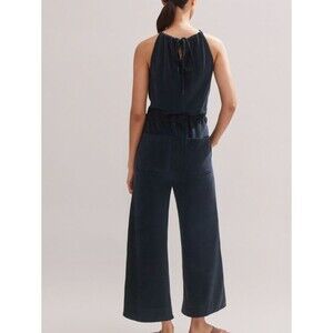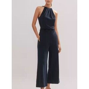 ME+EM Women's Towelling Halterneck Jumpsuit Navy Terry Cloth Wide Leg Size 6