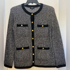 ME+EM Wool Blend Chevron Jacket Black & White Size Medium.