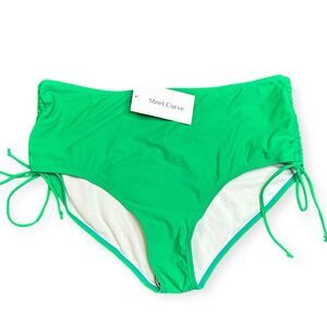 MEET.CURVE Women’s Green High Waist Adjustable Side Bikini Bottom Size XL
