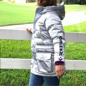 💖MEGA SALE💖 Iridescent Sideline Down Jacket Silver S 10006987-A01 XS
