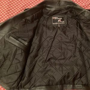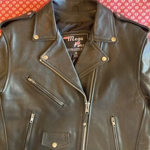MEGAFORCE PROTECTION Black Leather Motorcycle Jacket size 12. Reposhed from @sunshinegirl5. Only worn once in like brand new condition. Measurements laying flat are chest 22 1/2 inches across and length 22 inches long and sleeve length 24 inches long. This is the real genuine rider's jacket! All the functional snap and zipper details, inside chest pocket, quilted lining, weather resistant. Like New Condition from a smoke-free home - no rips, tears, odors or defects. EUC
