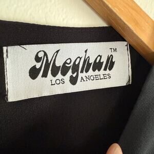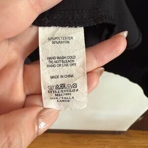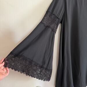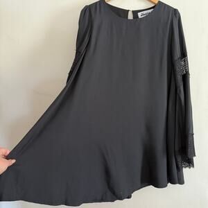 MEGHAN FABULOUS | Black Bell Sleeve Lace Trim Mini Trapeze Dress | Large