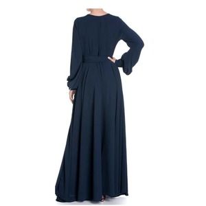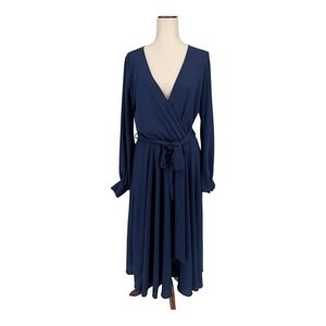 MEGHAN Los Angeles LilyPad Wrap Maxi Navy Dress with Surplice Neck - NWT- Size L