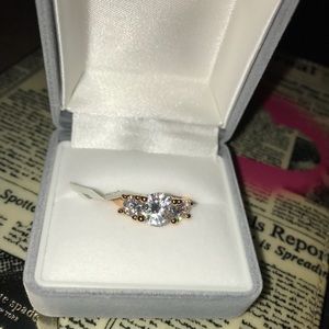 NWT Three Stone Rose Gold Plated Engagement Ring.