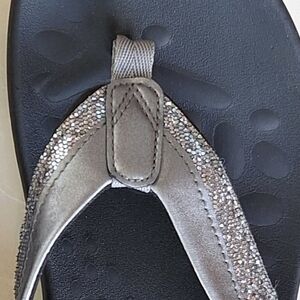 MEGNYA Comfortable Sparkling Silver Flip Flops Thongs Orthpedic Sandals