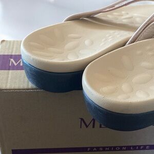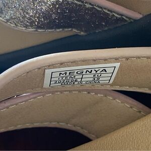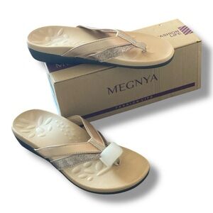 MEGNYA Padded Thong Sandals Tan & Gold Glitter Size US 8.5/39 Flip Flops NWT