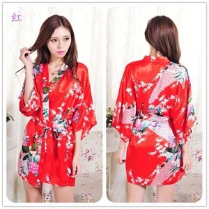 MEI YESIDA Red Silk Satin Kimono Style Robe