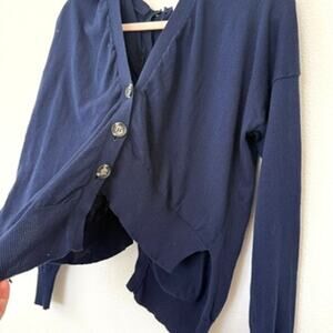 MEIMEIJ Italy Asymmetrical Button Cardigan Sweater Navy Blue Avant Garde Women Size L