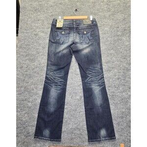 MEK Denim Jeans Womens 31x34 Yokohama Slim Boot Embroidered Flap Pockets Stretch