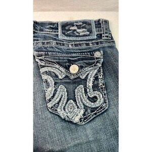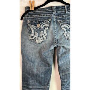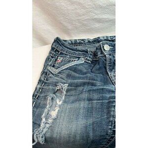 USED M.E.K. St Louis Boot Cut Denim. 26/32 on label but measurements have 28/32 with 7" Rise. SEE PHOTOS: These have been FACTORY Distressed + A Little Extra/Rip/tear on front Right hip!!! These jeans are used--BUT they still have many many MILES left in them, and this pair is ready to go to the club, the concert, the festival or out on a ride---SHE IS READY to take you there in style! *****Please note: 25% of ALL my listings/Sales is donated to a Horse Rescue and the buyer will be given the specific info about this Rescue. Thank you for Looking! BinL