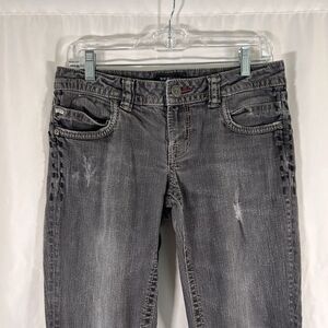 MEK Ulan Baton Cigarette Jeans Women's 28x34 Grey Denim Low Rise Embroidered
