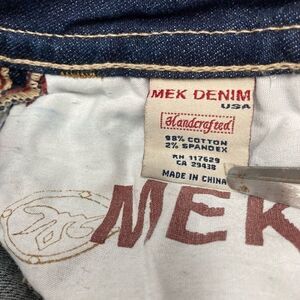 MEK Denim, CapeTown, Bootcut Jeans, distressed, Size 28, The tag says 34 in length, but measurements say 29 (pictures), 5 pockets, zipper and button closure, 98% cotton, 2% spandex. Please see approximate measurements in pictures before purchasing. Send me an offer. I will either accept or counter!