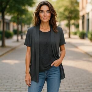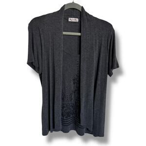 MEL & MO Womens Top Size Medium Gray Floral Textured Faux Twinset Soft Knit