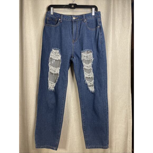 MELE & PERE Boyfriend Relaxed Fit Women’s Jeans - Size M Blue Denim Distressed
