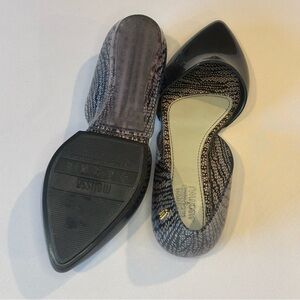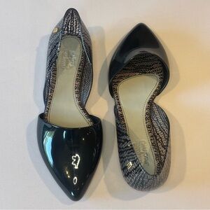 MELISSA + JASON WU Black and Reptile Print Pointed Toe Jelly Ballet Flats Size 7