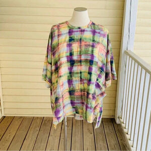 MELISSA MCCARTHY SEVEN7 Plus Size 2X Plaid Pastel Tunic Top Blouse Pockets