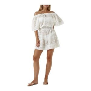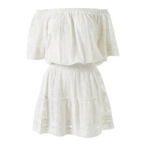 MELISSA ODABASH White Eyelet Off the Shoulder Michelle Mini Dress Medium Beach