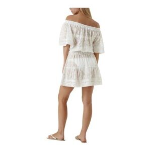 MELISSA ODABASH White Eyelet Off the Shoulder Michelle Mini Dress Beach Coverup Swim Coverup