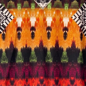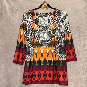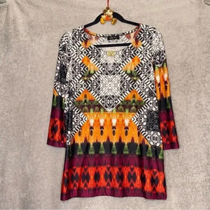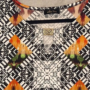 Melissa Paige XL Top Shirt Black Red Geometric 3/4 Sleeve Round Neck Keyhole