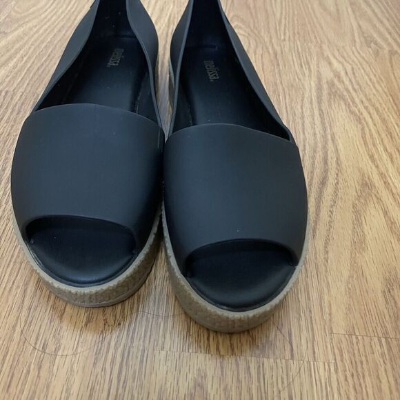 MELISSA Womens Puzzle Platform Sandals Black Open Toe Slip On Jelly US 8