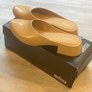 Brand new, never worn. These Melissa Zen flats in Beige Gilded offer a sleek, modern design with the comfort Melissa is known for. Crafted from eco-friendly, water-resistant Melflex material with a subtle sweet scent and cushioned sole for all-day comfort. Perfect for casual, work, or dressy occasions.